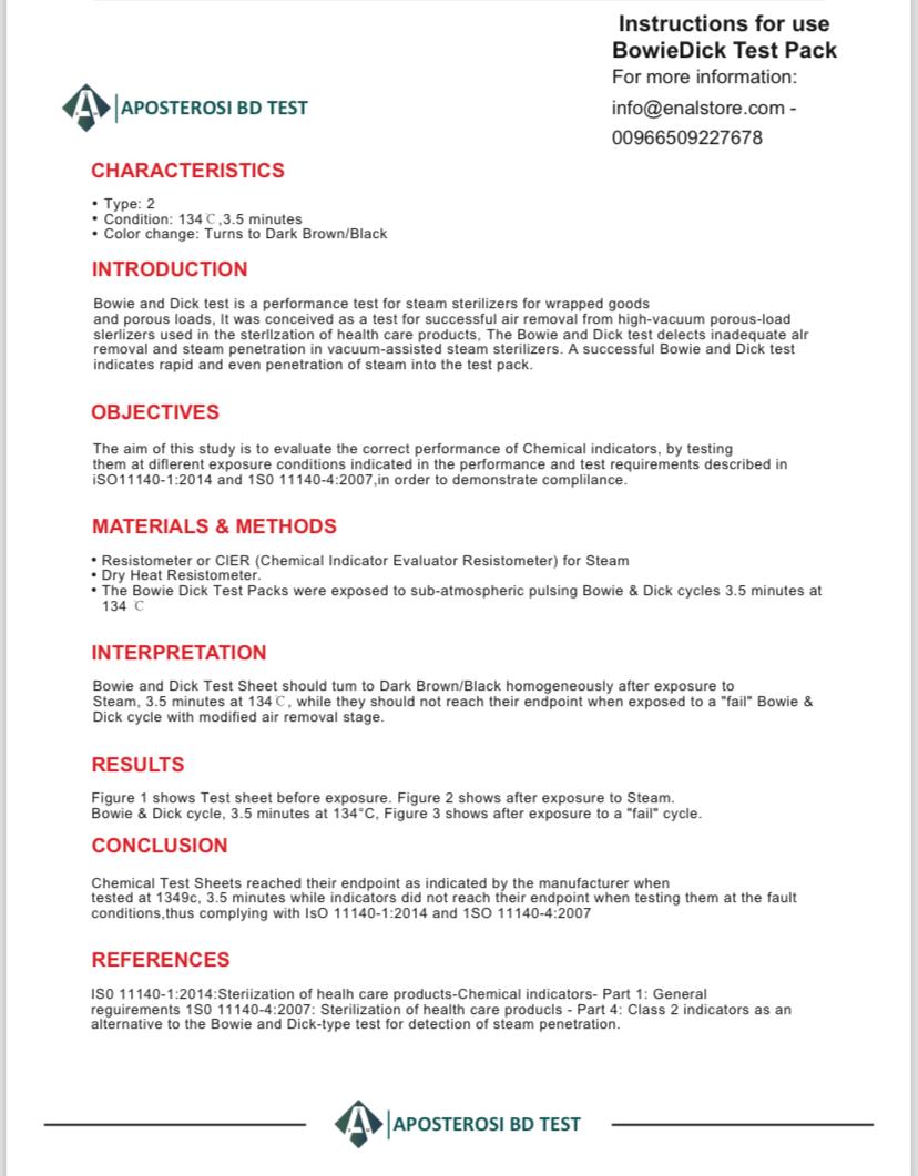 Bowie-Dick Test Pack