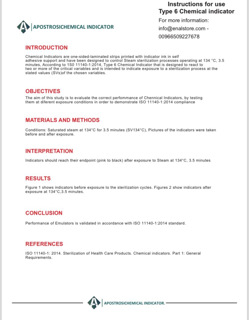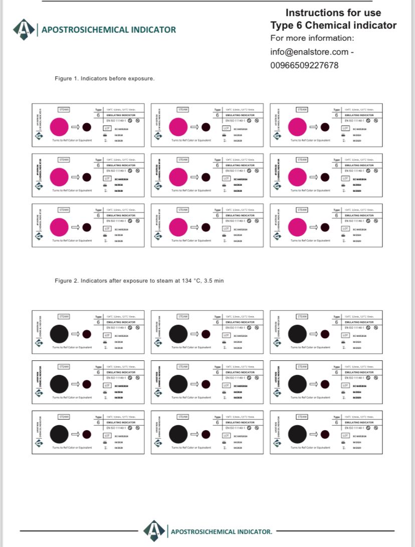 Apostrosi Chemical Indicator Class 6 Steam- شرائط التعقيم الكيميائية فئة 6