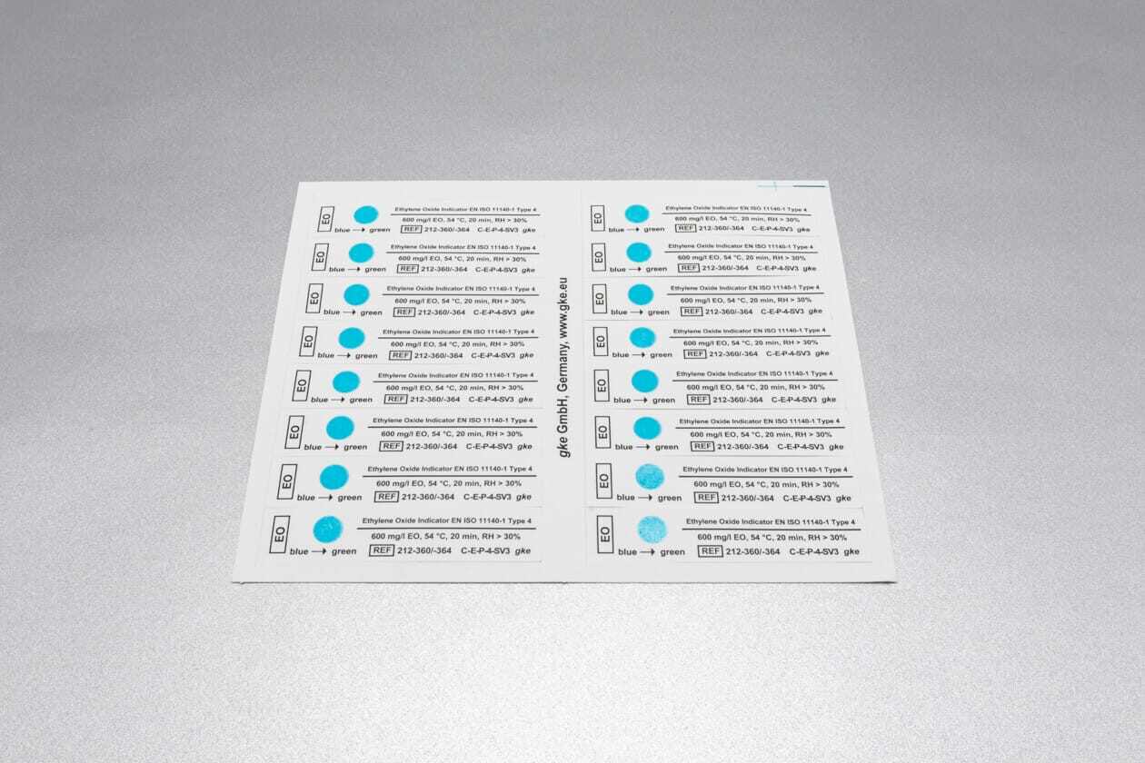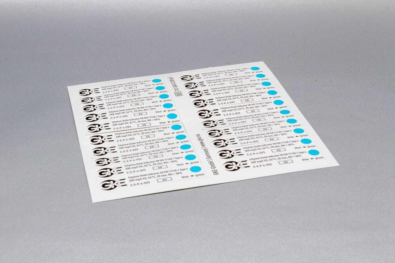 - GKE self-adhesive indicators according to EN ISO 11140-1 Type 4 to be used in packaged goods