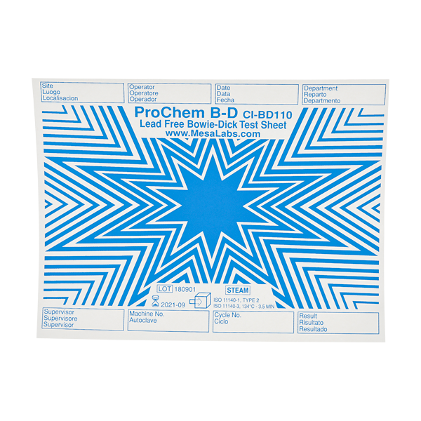 Individual Test Sheets – one should be placed within a stack of surgical towels that are assembled according to AAMI guidelines.