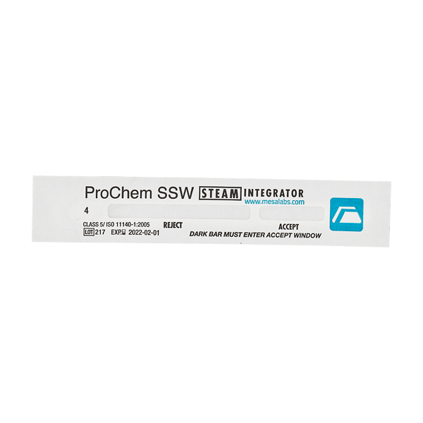 ProChem SSW Steam Sterilization Integrator is a single use Class 5 Integrating Indicator which complies with ANSI/AAMI/ISO 11140-1:2005.