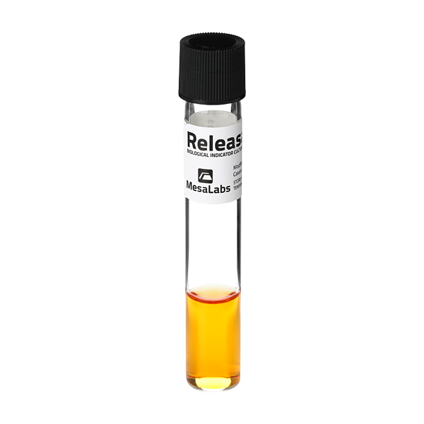 Releasat® Biological Indicator Culturing Set contains MesaStrip paper spore strip biological indicators and culture tubes of specially formulated soybean casein digest culture medium containing a color indicator which turns a dramatic yellow when spores grow.
